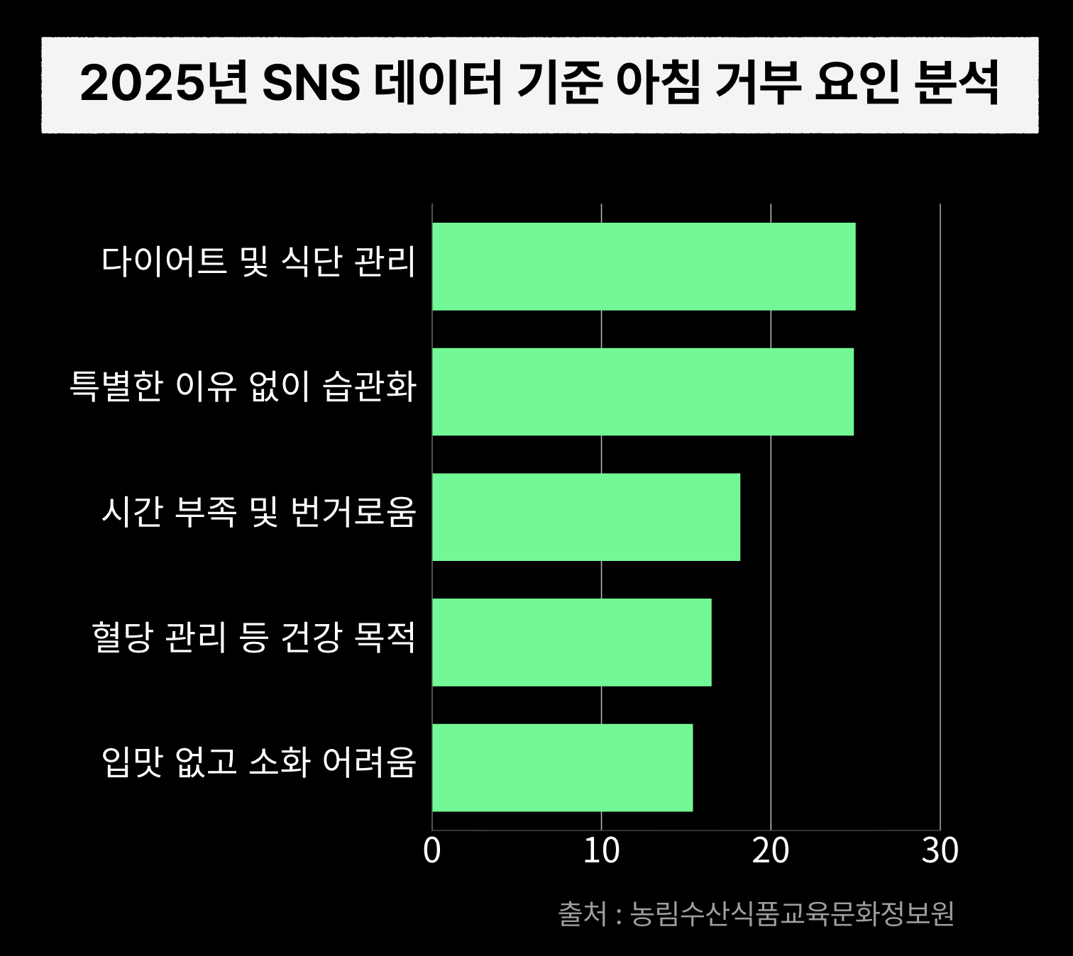통계적으로도 20대의 아침 식사 결식률은 높은 편입니다.