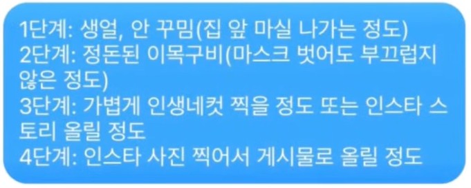 야, 오늘 너 꾸밈정도 몇 임?