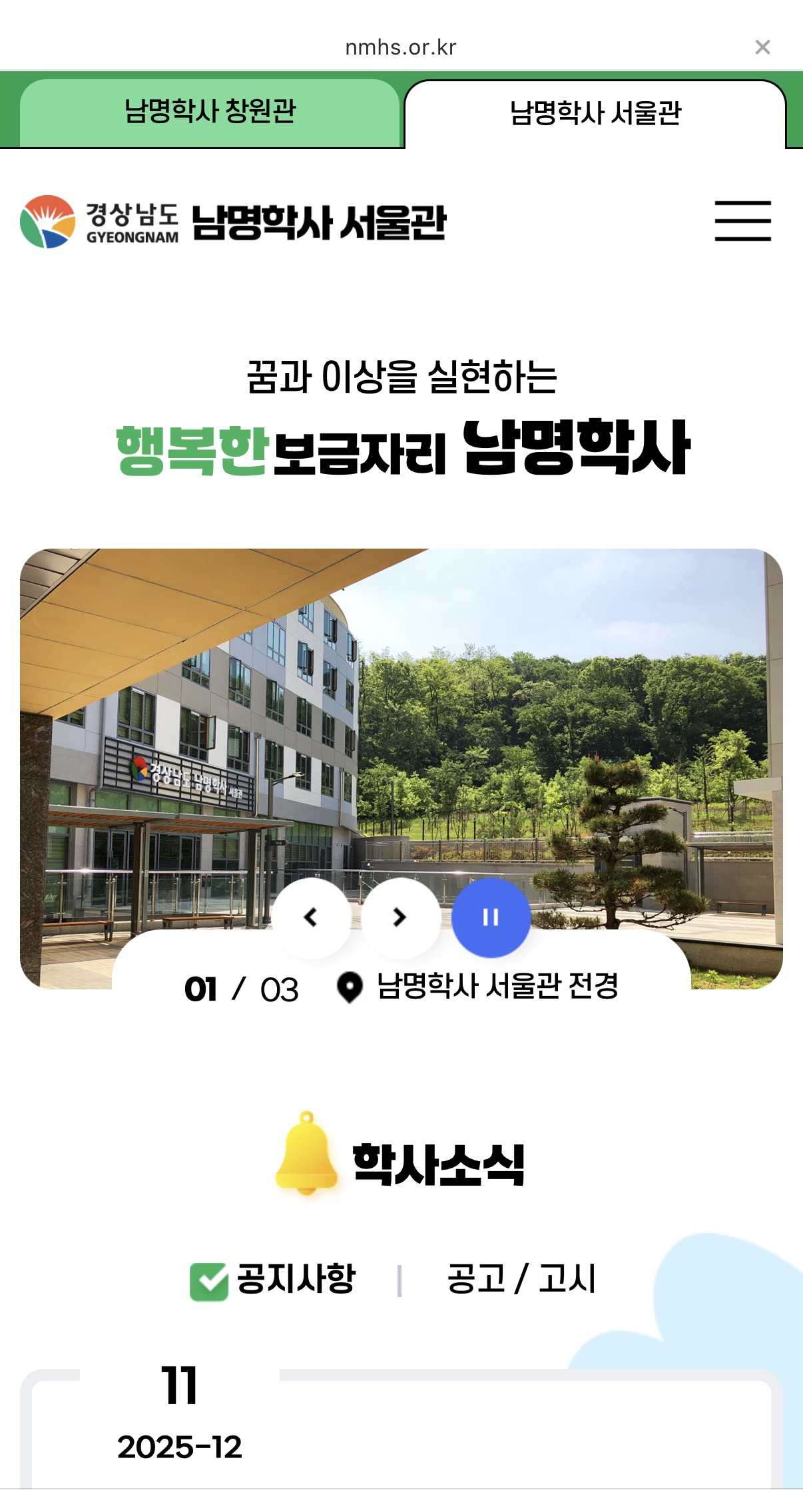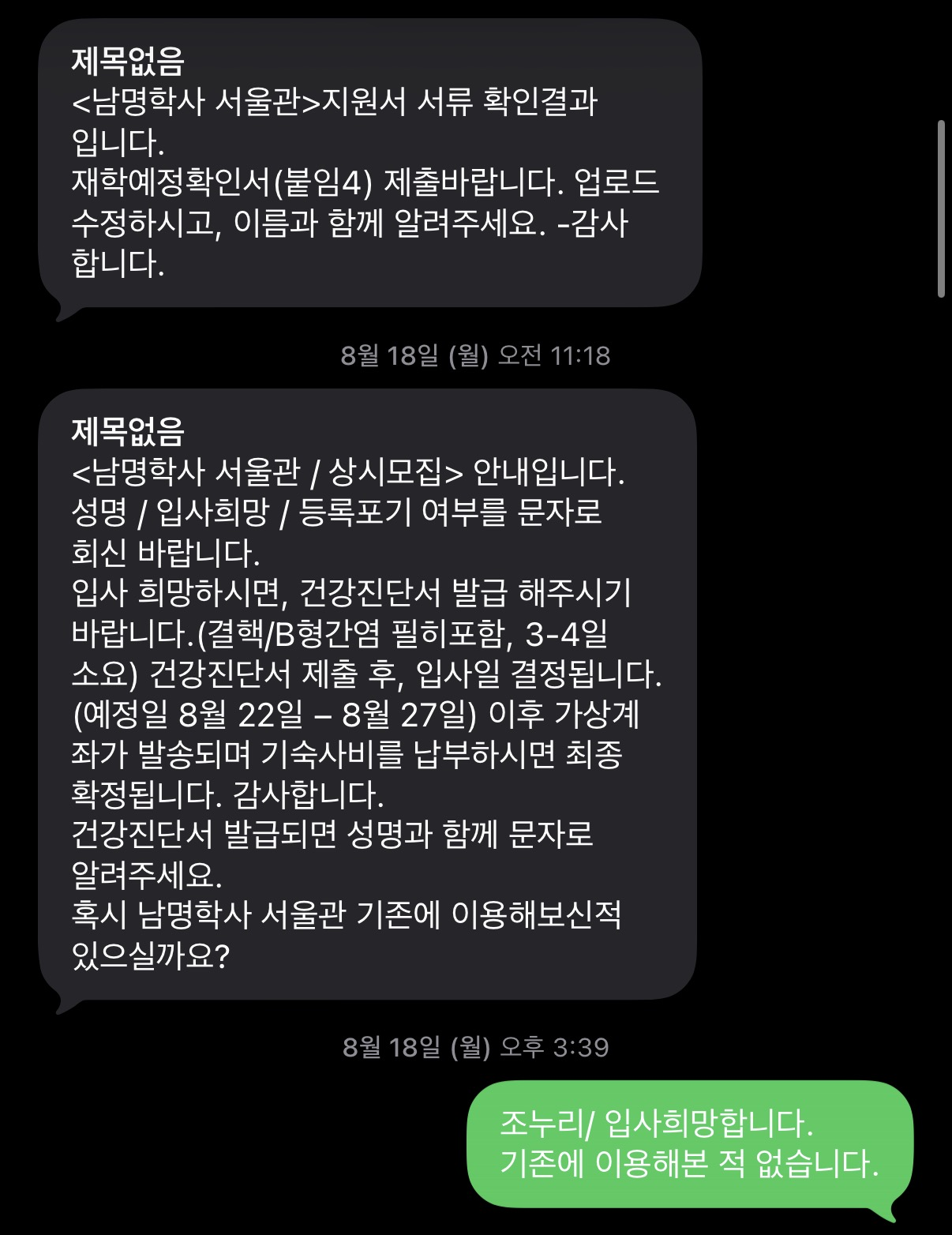 내가 머문 이곳은 "남명학사"로 경상남도에서 서울소재로 상경한 대학생(휴학생 안됨)