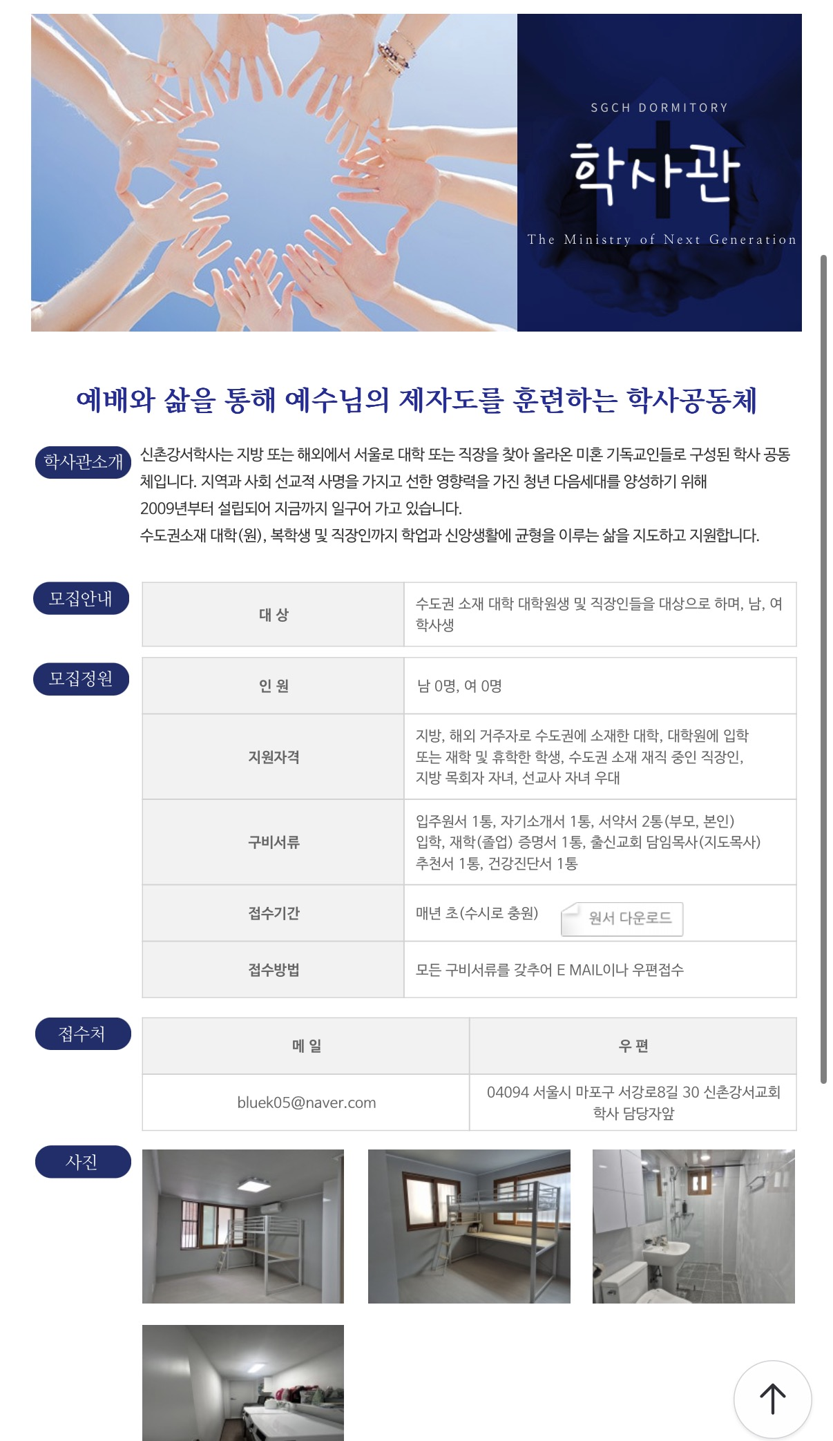 학기 단위로 뽑는 학교 기숙사랑 달리 교회학사는 수시로 모집하기에