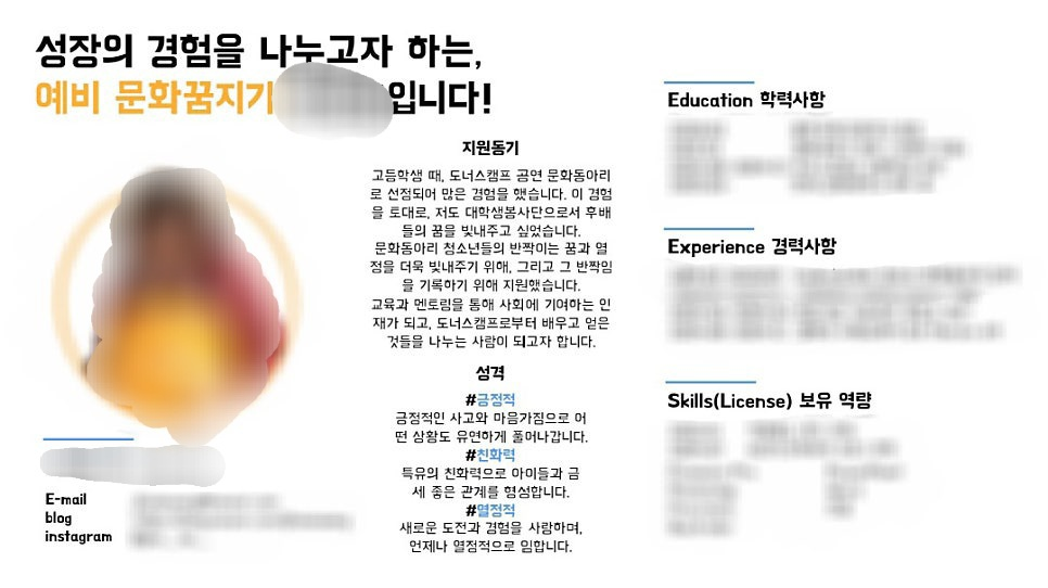 - 활동명: CJ도너스캠프 대학생봉사단 10기(서포터즈)