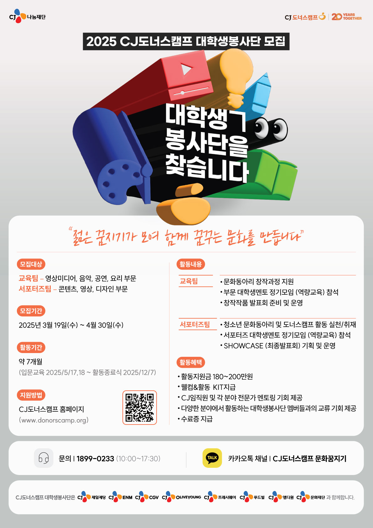 2025 CJ도너스캠프 대학생봉사단 모집 포스터'CJ도너스캠프 대학생봉사단 '에 지원한 이유 🏷️