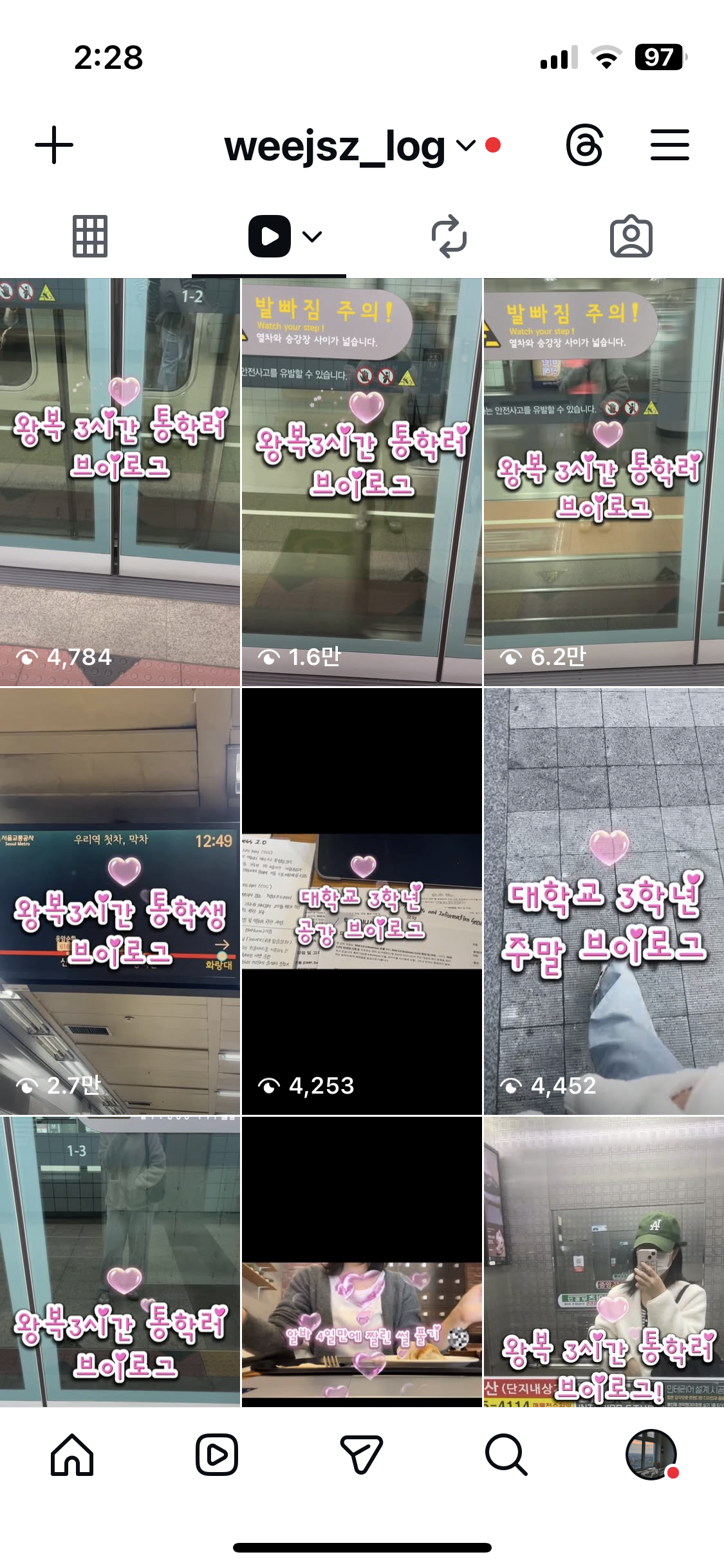 가장 뜻 깊은 컨텐츠는 학교가 너무 가기 싫은 마음에 등교 하는 길에 영상 찍고 학교에서 10분만에 편집해서 올렸던 릴스가 아닐까 싶어요ㅎㅎ
