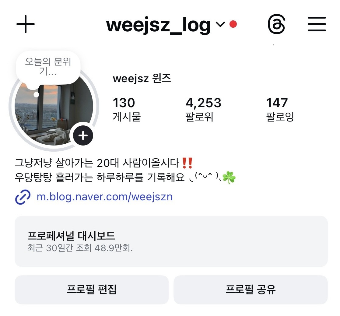 - 채널명: 인스타그램 weejsz_log(@weejsz_log)